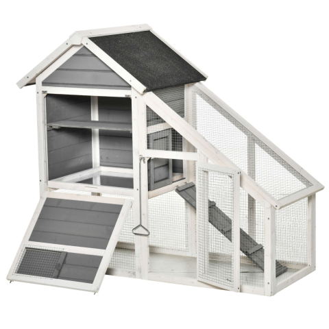 1 kép PawHut Nyúlketrec, PawHut, Fa, 140x65x120cm, szürke/fehér