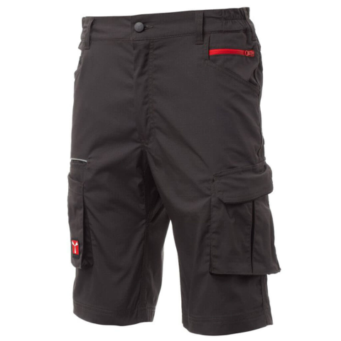 Rugalmas, stretch anyagból készült, ripstop erősítéses unisex rövidnadrág, nagy méretű, jól pakolható praktikus zsebekkel. Sztreccs anyagú rövid munkásnadrág, rugalmas derékkal, körben övbújtatókkalA külső és belső lábszáron tripla soros varrásokkal va