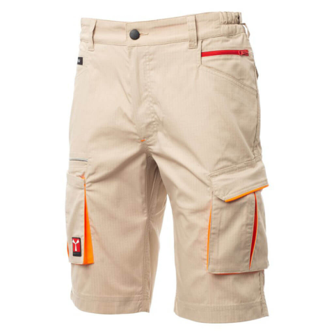 Rugalmas, stretch anyagból készült, ripstop erősítéses unisex rövidnadrág, nagy méretű, jól pakolható praktikus zsebekkel. Sztreccs anyagú rövid munkásnadrág, rugalmas derékkal, körben övbújtatókkalA külső és belső lábszáron tripla soros varrásokkal va