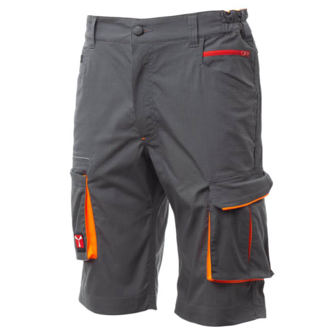 Rugalmas, stretch anyagból készült, ripstop erősítéses unisex rövidnadrág, nagy méretű, jól pakolható praktikus zsebekkel. Sztreccs anyagú rövid munkásnadrág, rugalmas derékkal, körben övbújtatókkalA külső és belső lábszáron tripla soros varrásokkal va