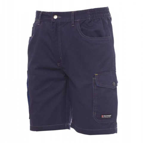 100% pamut anyagból készült rövid munkásnadrág sötétkék színben. Nagy méretű zsebei jól pakolhatóak, praktikusak, farzsebén fényvisszaverő csík található. 100% pamut anyagból készült rövid munkásnadrágA rövidnadrág dereka oldalt rugalmas, körben övbújt