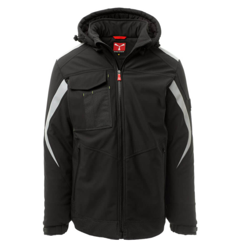 Modern és divatos megjelenésű, anyagának köszönhetően víz és szélálló, lélegző softshell télikabát, bélelt, levehető kapucnival, fényvisszaverő elemekkel a karokon és a vállon. Kényelmes és nagyon meleg viseletet biztosít. Víz és szélálló levehető kapu