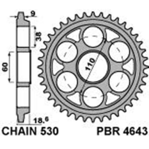 PBR acél hátsó lánckerék 4643 - 530 egyéb motorkerékpár alkatrész 1 kép