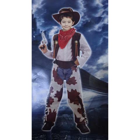 Cowboy szett. Méretek: S: Mellény 35 cm hossz, mellbőség 68 cm. chaps 56 cm M: Mellény 37 cm hossz, mellbőség 74 cm. chaps 65 cm. L: Mellény 37,5 cm hossz, mellbőség 72 cm. chaps 78 cm. Cowboy szett, mellyel igazi újvilági marhapásztornak érezheti mag