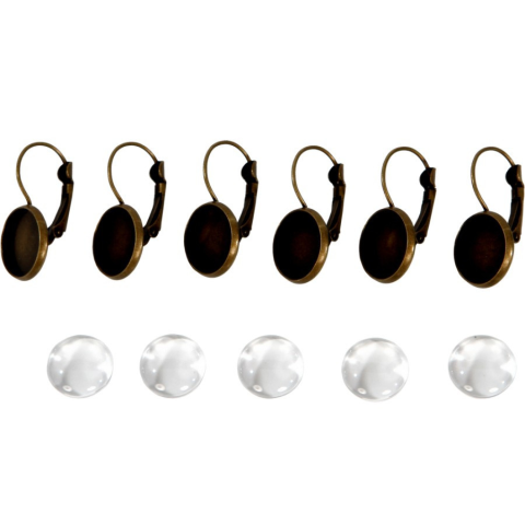 1 kép PC Fém fülbevaló alap, lencsével kör alakú, 12mm - bronz 1 pár