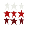 Filcből készült csillagok karácsonyi dekorációkhoz, asztaldísznek. Varrható, ragasztható figurák. A csomagban 9db csillag található, 3 féle színben.