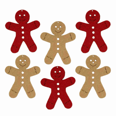 Filc figura csomag – Mézeskalács figurák két színben Dobd fel karácsonyi dekorációdat ezzel a bájos filc mézeskalács figura csomaggal! A csomag kétféle színű mézeskalács figurát tartalmaz, amelyek tökéletesek karácsonyfadíszekhez, ajándékkísérőkhöz vagy e