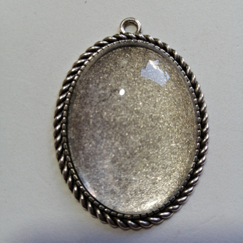1 kép PC Üveglencsés fém ékszer alap medál - ovális, ezüst színű