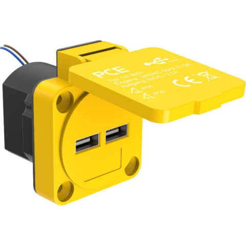 PCE U25050 Falra szerelhető dugalj USB töltőkimenettel IP54 Sárga (U25050)