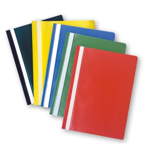 Gyorsfűző PP pd A/4 5 db/csomag élénk színek Műanyag irattartó vegyes élénk színekbenA/4-es iratok rendszerezésére,tárolásáradokumentumok lyukasztás nélküli lefűzéséhezÁtlátszó előlap, színes hátlap, feliratozható oldalcsíkcsomag tartalma: 1-1 db feket