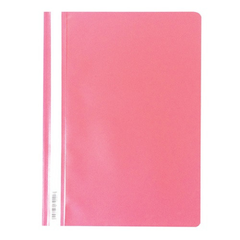 Gyorsfűző PP pd A/4 rózsaszín * 200 lap lefűzésére alkalmas gyorsfűző * fém lefűző, műanyag leszorító fül * feliratozható oldalcsík * 120 mikron vastag áttetsző előlap, 180 mikron vastag színes hátlap
