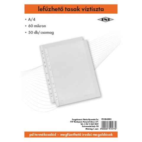 1 kép PD Office Lefűzhető tasak pd A/4 60 mic. víztiszta 50 db/csomag