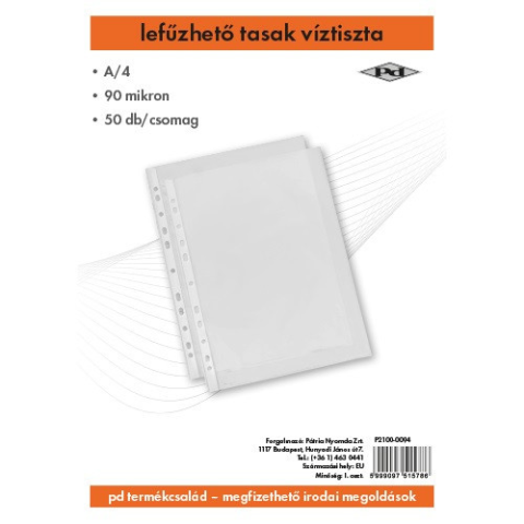1 kép PD Office Lefűzhető tasak pd A/4 90 mic. víztiszta 50 db/csomag