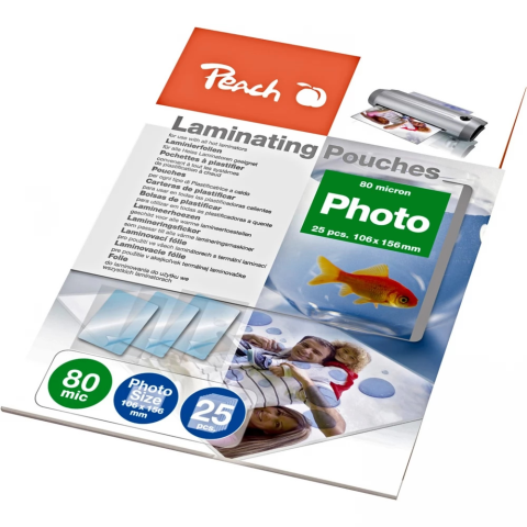 A Peach lamináló kiegészítők más gyártók lamináló készülékeihez is használhatók. A csomagban 25 db lamináló fólia található 10x15cm méretben 80 mikron vastagságban.