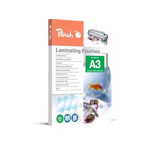 Lamináló fólia - A3, 25 darab a csomagban, dokumentumok és fényképek laminálására, fólia vastagsága 80 mikron, fényes, laminálás módja meleg, alkalmas bármely típusú asztali laminálógéphez és dokumentum megjelenésének kiemelése A Peach PPR080-01 átlátszó lamináló fóliát A3-as formátumú kétoldalas dokumentum laminálására tervezték. Tehát könnyedén laminálhatsz vele képeket, nagy méretű fényképeket, okleveleket