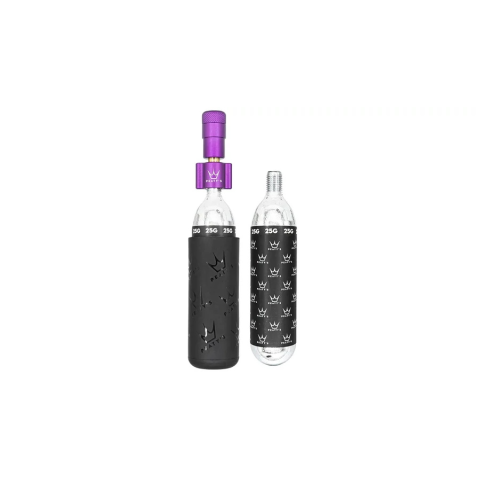 Két CO2 patronnal ellátott készlet a külső gumi gyors felfújásához. A szabadalmaztatott kialakítású szelepfej CNC megmunkált 6061-es alumíniumötvözetből készült. Összesen 12 színválasztékban kapható 16 vagy 25 g-os patronokkal és felhúzható szilikon védőburkolattal.