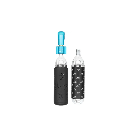 Két CO2 patronnal ellátott készlet a külső gumi gyors felfújásához. A szabadalmaztatott kialakítású szelepfej CNC megmunkált 6061-es alumíniumötvözetből készült. Összesen 12 színválasztékban kapható 16 vagy 25 g-os patronokkal és felhúzható szilikon védőburkolattal.