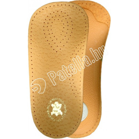 3/4-es hosszúságú, valódi bőr gyógytalpbetét, haránt-, és lúdtalpemeléssel, rugalmas sarokággyal. A talpbetét közepén lévő párna megemeli a harántot, ezáltal leveszi a terhelést a harántcsontozatról. A lúdtalp emelése leveszi a hosszanti izomzatra nehezed