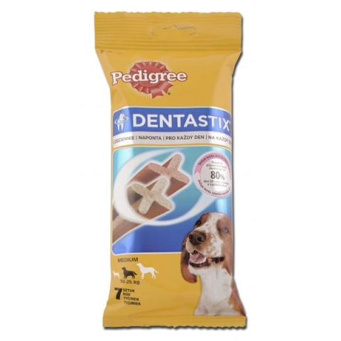 Denta Stix A Pedigree® Napi DentaStix® különleges X-alakú fogápoló pálcika, amelyről tudományosan bizonyították, hogy napi használat esetén akár 80%-kal csökkenti a foglepedék kialakulását. A Pedigree® Napi DentaStix® termékeket úgy tervezték, hogy hosszan kelljen rágni a megfelelő hatékonyság érdekében, így csökkentve a foglepedék és fogkő kialakulását enyhén érdes állagának és aktív hatóanyagainak köszönhetően.Ízletes, alacsony zsírtartalmú, ho