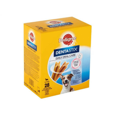 Pedigree DentaStix 5-10kg - jutalomfalat (fogtisztító) Kistestű kutyák részére 4x (7db/110g)Hármas hatás: - Csökkenti a fogkőképződést, akár 80%-kal - Tisztítja a nehezen elérhető fogakat - Hozzájárul a fogíny egészségéhezFelbontás után 14 napon belül felhasználandó.
