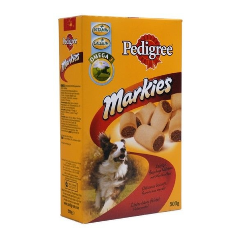 Markies 500g Pedigree Markies a ropogós keksz és a húsos töltelék ínycsiklandó kombinációja, amely gazdag kálciumban és foszforban. Ha kutyusa valami különlegeset érdemel, adjon neki Markies-t – egészséges kekszet, amelyet egyszerűen imádnak a kutyák. A kutyák szeretnek játszani - a Markies™ jutalomfalat ropogós kutyakeksz ízletes töltelékkel - a kutyák odvavannak érte. Nagyszerűen gurítható, dobható és elkapható, ideális a vidám és ízletes játékhoz. A
