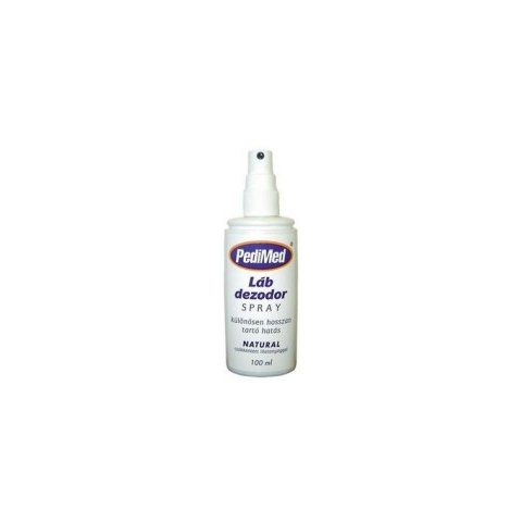 Pedi Med cipődezodor natur 100 ml Különleges gyógynövény hatóanyagokat tartalmazó spray. A cipő belsejébe permetezve, megakadályozhatjuk a kellemetlen cipőszag kialakulását és gátolhatjuk a láb gombásodását. Rendszeres használata mellett a cipő kelleme