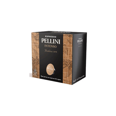 Pellini Intenso kiváló minőségű őrölt kávékapszulában (10db 7,5g-os egyadagos kávékapszula védőgázas csomagolásban. 1 dobozban = 75g ) Bársonyosan testes karakterű őrölt kávé, pörkölt és aszalt gyümölcsök aroma- és illatjegyeivel, harmonikus és hosszan lecsengő ízvilággal. A Pellini törekszik arra, hogy mindig hibátlan ízű és állandó minőségű kávé kerüljön a csomagolásba. A Pellini minőségbiztosítási rendszerében az UNI EN ISO 9001 nemzetközi