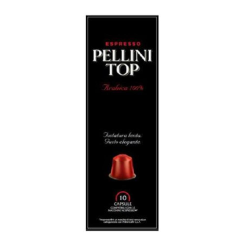 Kávékapszula, Nespresso® kompatibilis, 10 db, PELLINI, Top (KHK743) Pellini Top kiváló minőségű őrölt kávékapszulában (10 db 5g-os Egyadagos kávékapszula védőgázas csomagolásban. 1 karton = 50g ) Elegáns és választékos aromájú 100% Arabica őrölt kávé