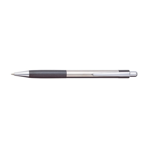 Nyomógombos mechanikával működő cserélhető betétes golyóstoll. Rozsdamentes acél test, kék, piros, fekete kiegészítők. Írásszín: kék. Golyósbetét: BR98C.