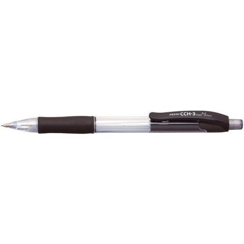 Nyomósirón, 0,5 mm, fekete tolltest, PENAC CCH-3 - 0,5 mm-es hegy - beépített radír - áttetsző test - gumírozott fogórész - visszasüllyeszthető grafitbél-kivezető Gyártó/első EU forgalmazó elérhetősége: KOTOBUKI EUROPE GMBH Sichelweg 8, 90765 Fürth,