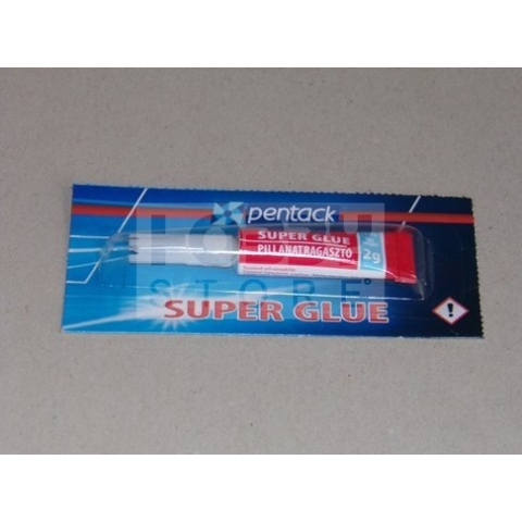 Pentack Super Glue pillanatragasztó 2 g A Pentack Super Glue egy gyorsan kötő, ciano-akrilát alapú pillanatragasztó, amely különösen alkalmas kerámia, üveg, fa, gumi, bőr, papír, fém és több szintetikus anyag, például műanyag ragasztására. Néhány másodpe
