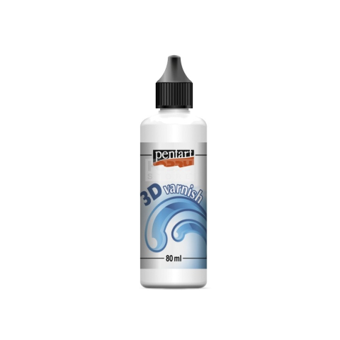Pentart 3D lakk 80 ml A Pentart 3D Lakk egy különleges, vízbázisú fedőlakk, amely száradás után vízálló, térhatású (3D) bevonatot képez, mintha folyékony üveg borítaná a felületet. Ideális választás kreatív díszítések, mixed media művek és ékszeralkotáso