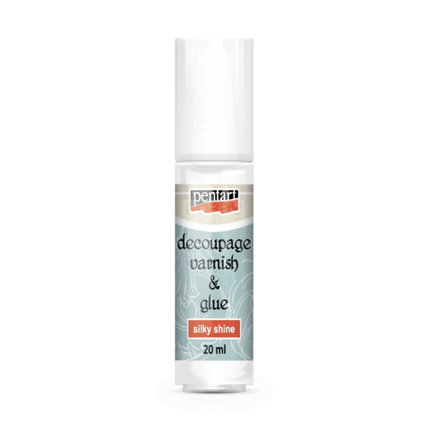 Pentart Dekupázs ragasztólakk selyemfényű 20 ml A Pentart Dekupázs ragasztólakk selyemfényű 20 ml egy vízbázisú, kettős funkciójú termék, amely egyszerre lép fel ragasztóként és fedőlakként. A selyemfényes bevonat elegáns és természetes megjelenést kölcs