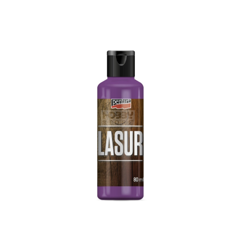 Pentart Lazúr lila 80 ml 17332 Lazúr - beltéri használatra ajánlott, vízbázisú vékonylazúr fatárgyak színezésére és védelmére, mely mélyen beszívódik a fába, de a fa erezetét nem fedi el. Száradás után a felület matt és vízálló lesz. Ecsettel vagy szivac