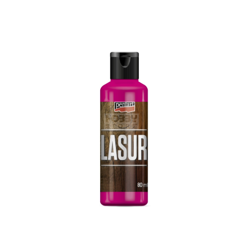 Pentart Lazúr magenta 80 ml 17331 Lazúr - beltéri használatra ajánlott, vízbázisú vékonylazúr fatárgyak színezésére és védelmére, mely mélyen beszívódik a fába, de a fa erezetét nem fedi el. Száradás után a felület matt és vízálló lesz. Ecsettel vagy szi