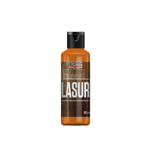 Pentart Lazúr narancs 80 ml 17328 Lazúr - beltéri használatra ajánlott, vízbázisú vékonylazúr fatárgyak színezésére és védelmére, mely mélyen beszívódik a fába, de a fa erezetét nem fedi el. Száradás után a felület matt és vízálló lesz. Ecsettel vagy szi