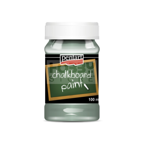 Pentart Táblafesték country zöld 100 ml Fára, falra, papírra, feszített vászonra alkalmazható, vízbázisú festék. A lefestett felületre krétával írhatunk, a feliratot vizes ruhával letörölhetjük. A lecsiszolt, portalanított felületet széles ecsettel vagy