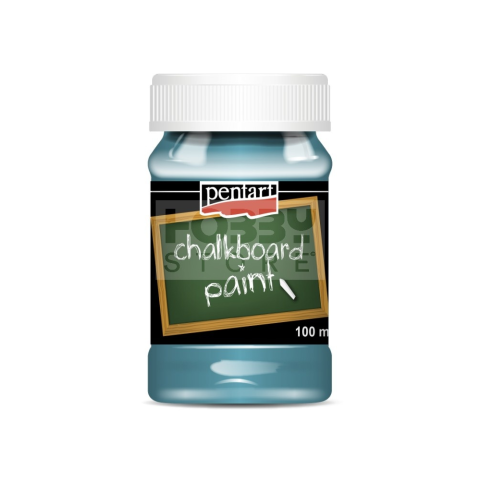 Pentart Táblafesték türkiz 100 ml Fára, falra, papírra, feszített vászonra alkalmazható, vízbázisú festék. A lefestett felületre krétával írhatunk, a feliratot vizes ruhával letörölhetjük. A lecsiszolt, portalanított felületet széles ecsettel vagy szivac
