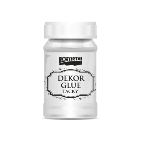 Dekorragasztó - tacky Kiszerelés: 100ml Nagy felületek, bútorok díszítéséhez is kiváló, öntapadóra száradó, vízbázisú ragasztó. Ecsetnyom nélkül felvihető, így teljesen láthatatlan marad. Kiváló fóliák, bársonypor és glitterek ragasztásához. Dekorraga
