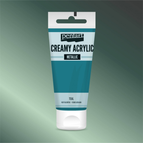 1 kép Pentart krémes akrilfesték metál ZÖLDESKÉK 60 ml