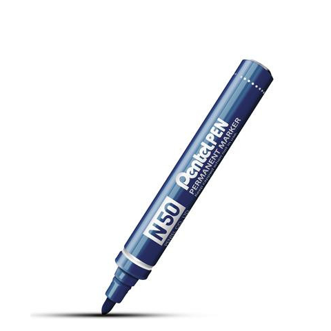 Pentel Pen N50 robosztus testű alkoholos marker -általános felhasználású marker, mely alkalmas fém-, fa-, üveg-, karton- és műanyag felületek jelölésére -ellenálló hegy -alumínium test -írásvastagság: 2 mm -íráshossz kb. 1000 méter Gyártó/első EU forga