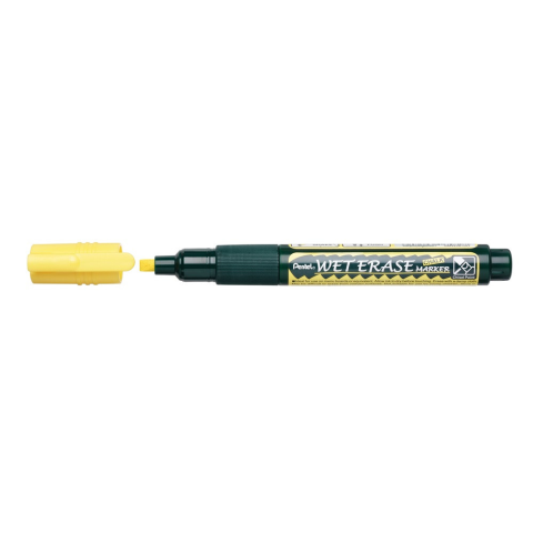 Krétamarker vágott, törölhető folyékony SMW26-GO Pentel sárga - vágotthegyű, íráskép a hegy forgatásától függően 1,5-4 mm között,- ideális menütáblák, hagyományos krétatáblák, rendezvények, előadások fehér tábláira, üveg, fém és egyéb nem porózus felül