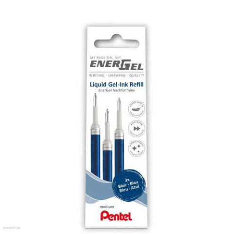 Azonnal száradó tintájú Pentel EnerGel rollerirón betét. A gyártási technológiának köszönhetően a folyékony és a géltinta legjobb tulajdonságait egyesíti a szupersima írási élmény érdekében. A csomag 3 db betétet tartalmaz. A következő Pentel rollertollak