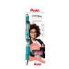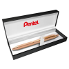 1 kép Pentel Rollertoll 0,35mm, fém rózsaszín test, Pentel Energel BL407P-A, írásszín kék