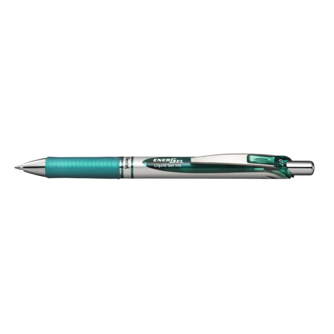 Rollertoll zselés 0.7mm Pentel EnerGel BL77-S3X türkiz Nyomógombos zseléstoll, exkluzív, fém hatású tolltest, fém klipsszel, rovátkolt fogózóna a kényelmes, csúszásmentes használatért, 0,7 mm hegyátmérő = 0,35 mm írásvastagság, tintaablakkal a kellemet