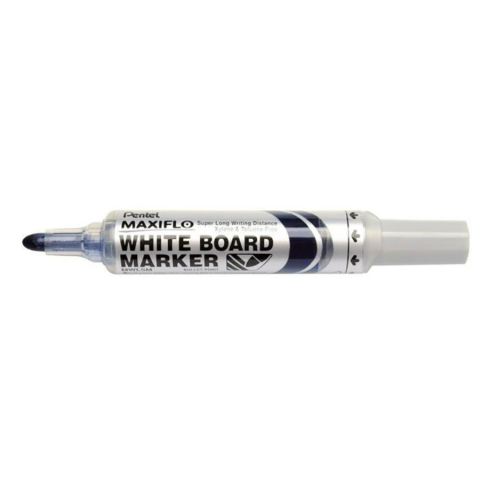 A PENTEL Maxiflo táblafilc professzionális megoldás konferenciaterembe vagy tanterembe. -a pumpás megoldással kivédheti a gravitáció hatását, akár fejjel lefelé is írhat -nyomja meg a marker végében található gombot és írjon háromszor tovább, mint egy átlagos táblamarkerrel -50%-ban újrahasznosított anyagokból készült -a tinta az ablakos, pumpás adagolórendszernek köszönhetően teljes mennyiség kiírható a markerből -extra hosszú íráshossz: 1100 m -kúpos