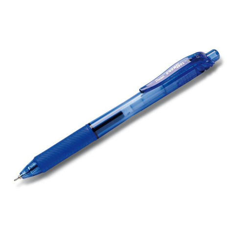 Zseléstoll, 0,25 mm, nyomógombos, PENTEL EnerGelX BLN105, kék Nyomógombos, tűhegyű zselés rolleriron. -gyorsan száradó tinta -ajánlott balkezesek számára -elasztikus klip -84 %-ban újrahasznosított, PVC mentes anyagból készült -gumírozott fogózóna -c
