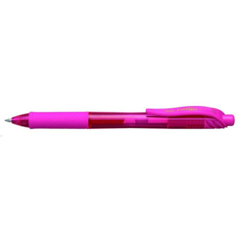 Zseléstoll, 0,35 mm, nyomógombos, PENTEL "EnerGelX BL107", rózsaszín - PENBL107R - Cserélhető betétes zseléstollak - Vidám színekkel öröm az írás! -a tinta színével megegyező gumírozott fogórész