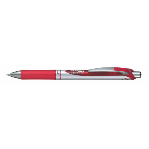 Zseléstoll, 0,35 mm, nyomógombos, PENTEL EnerGel BL77, piros Nyomógombos zseléstoll -exkluzív, fém hatású tolltest -fém klip -rovátkolt fogózóna a kényelmes, csúszásmentes használatért -golyóátmérő: 0,7 mm -írásvastagság: 0,35 mm -kémlelőnyílás -ultr