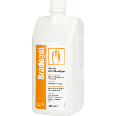 A Bradogél kézfertőtlenítő gél egy hatékony és környezetbarát megoldás a kéz higiénés tisztítására. Tulajdonságok:Hatásspektrum: A gél baktericid (MRSA), fungicid, szelektív virucid (norovírus és adenovírus inaktiváló hatású) és tuberkulocid.Felhasználás: